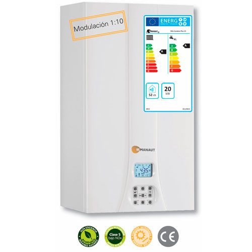 Nueva gama Manaut de calderas murales de condensación, H2 Ready (20% Hidrógeno), Modulación 1:10, con termoregulación. Óptimas prestaciones gracias a la tecnología Adaptive y al intercambiador primario de condensación en acero inoxidable con función “Round Flow” y al intuitivo panel digital de control con display.